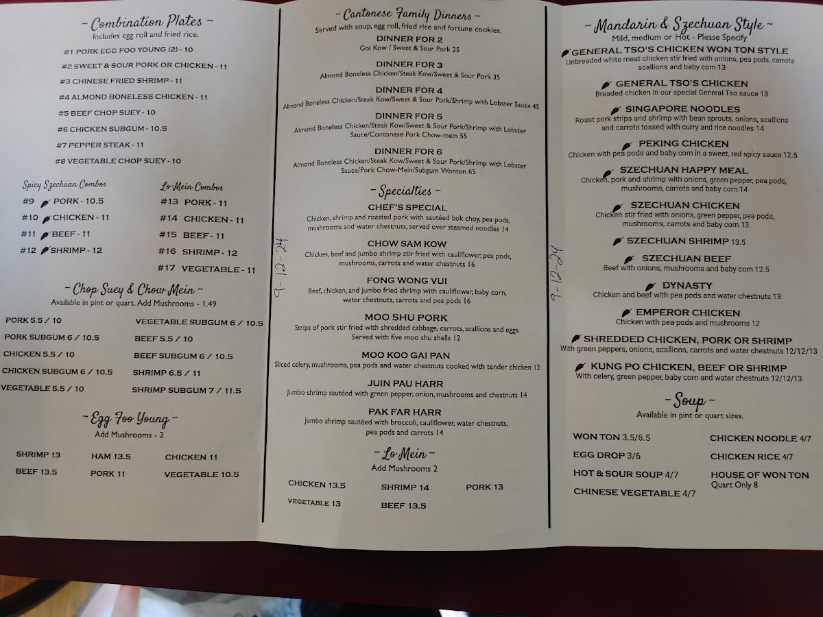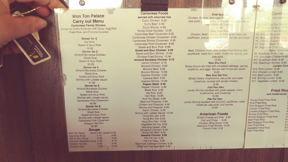 Won Ton Palace Inc Menu