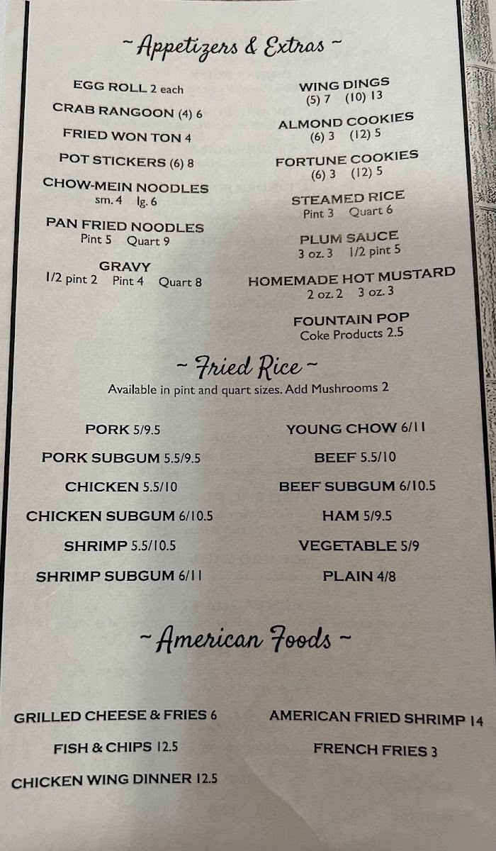 The menu at Won Ton Palace Inc offers a straightforward and approachable selection of Chinese dishes that feel right at home in a casual, unpretentious setting. It’s the kind of place where familiar favorites and comforting flavors meet time-tested recipes, making it easy to enjoy a relaxed meal any day of the week.